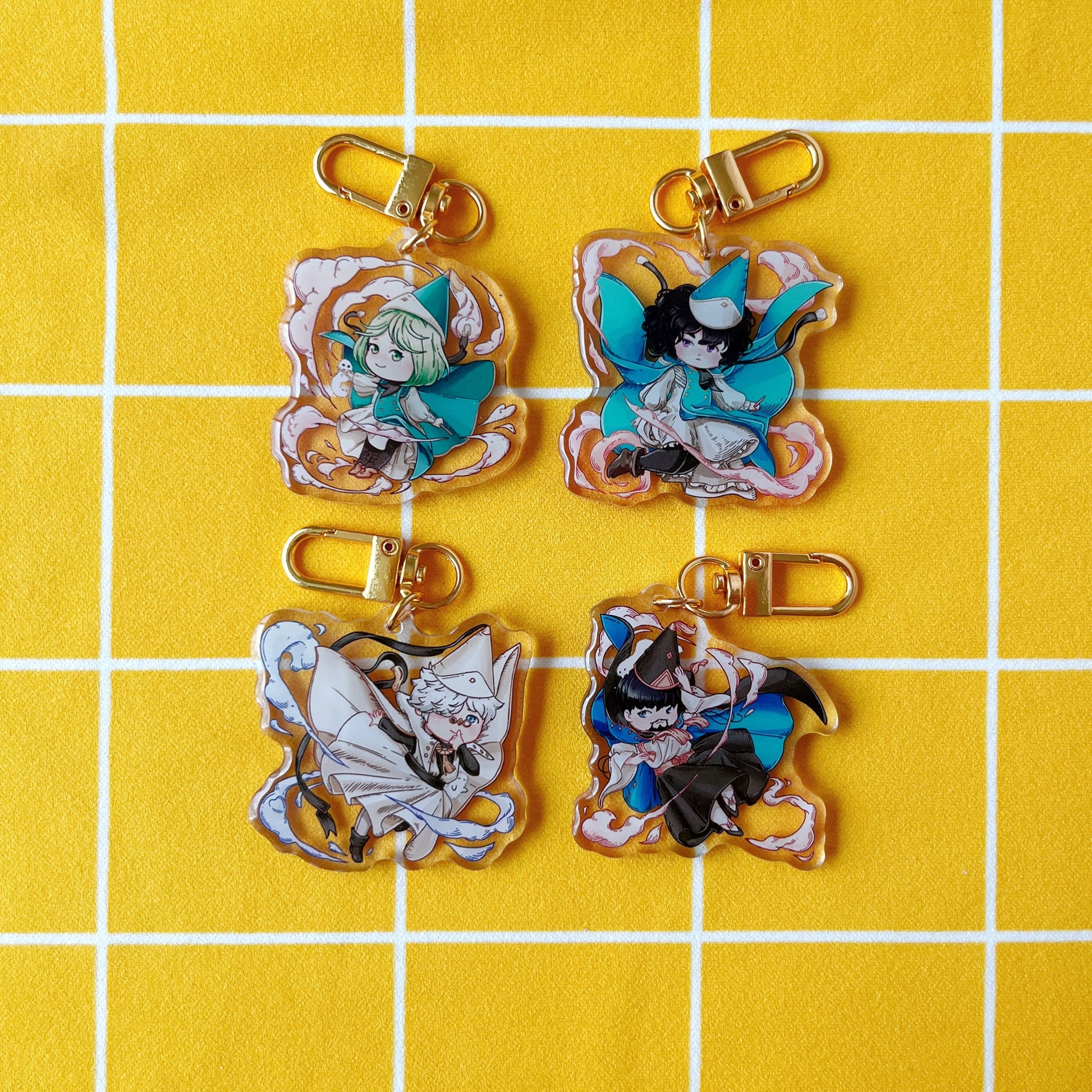 2 inch Witch Hat atelier Acrylic Charms. They are all double sided and have epoxy finish on one side with a gold finish clasp.